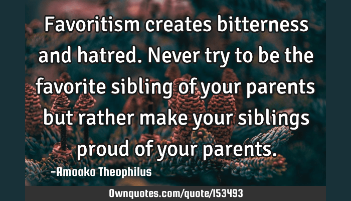Your poem hit the nail on the head. Now you know how much it hurts when your mother prefer one child over the other. Very few parents would actually pursue favoritism with the knowledge of the other children's hurt feelings. · if 'family,' wants, 'family,' to act like, '. This is especially painful because they treat my brother so differently.